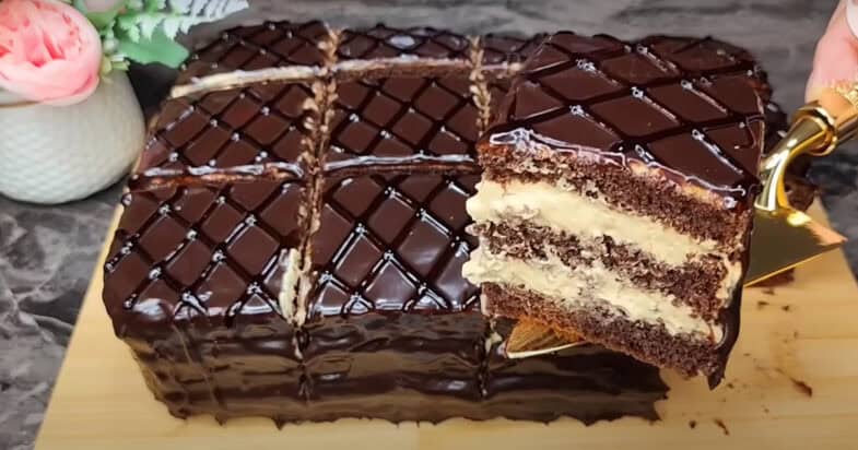 Прикрашаю за бажанням просто розтопленим шоколадом. Ставлю в холодильник до застигання шоколаду. Нарізаю та смакуємо з чаєм чи кавою!
