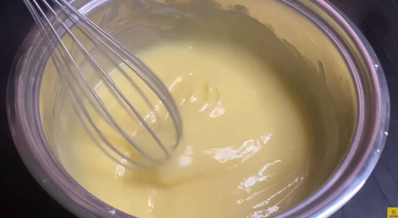 Далі поступово вливаю молоко і далі перемішую вінчиком.