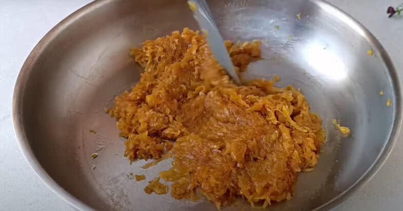 У сковорідку кладу цукор, ставлю на вогонь, доводжу до розчинення та карамельного кольору. Яблука натираю на терці, додаю до цукру. Додаю м’яке вершкове масло і корицю. Тушкую до однорідності начинки, постійно помішуючи лопаткою.