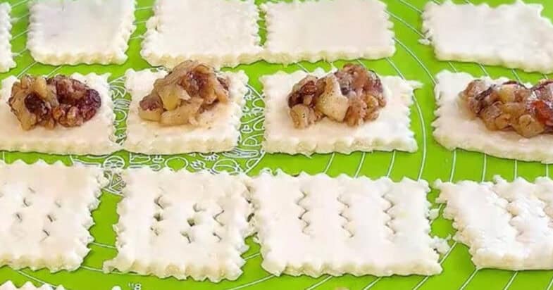 На половину квадратів викладаю начинку, на іншій половині роблю в центрі 3 надрізи.