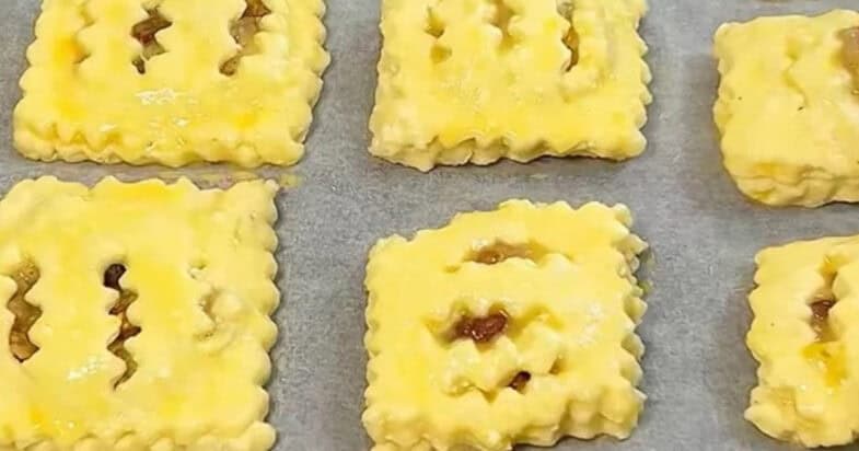 Закриваю начинку надрізаними квадратами, викладаю на деко з папером для випічки. Випікаю 20-25 хвилин, при 180 градусах. Смачного!