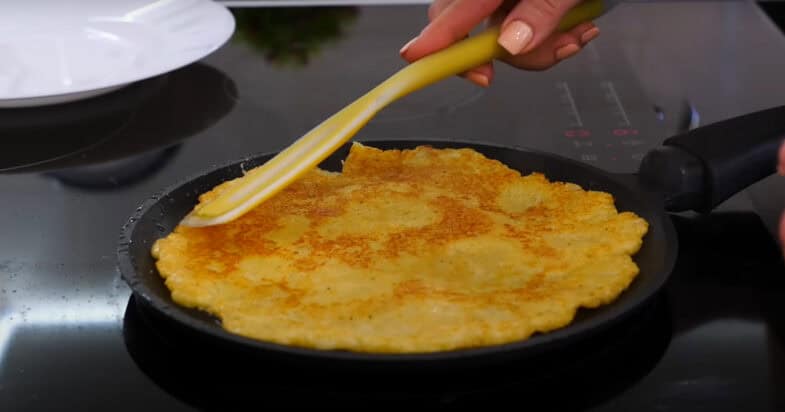 На сковорідці розігріваю олію, викладаю масу, розрівнюю її по сковорідці та обсмажую з обох боків до золотистості.