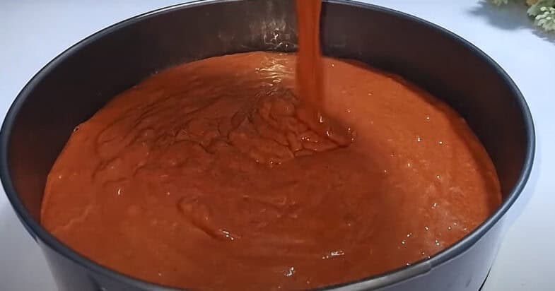 Форму діаметром 22 см застеляю дно пергаментом і виливаю усе тісто. Випікаю у розігрітій духовці до 170 градусів приблизно 35 хвилин.