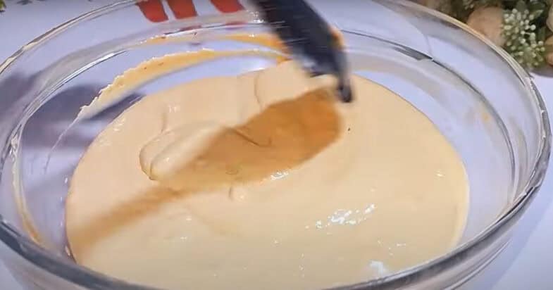 Змішую лопаткою у мисці сметану і варене згущене молоко до однорідності.