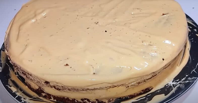 Перемащую усі коржі кремом. Верх та боки торта також змащую.