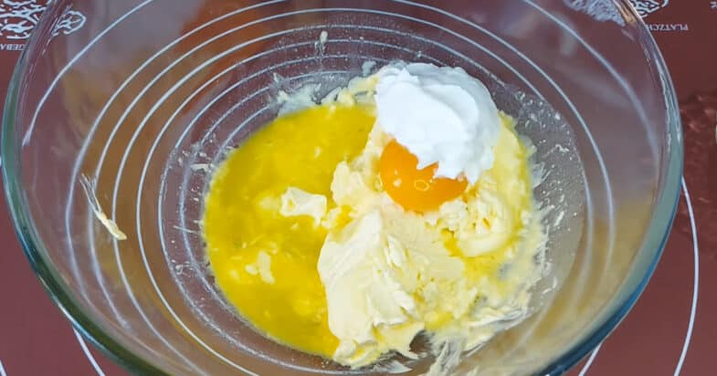 До м’якого вершково масла додаю дрібку солі, жовток та сметану.