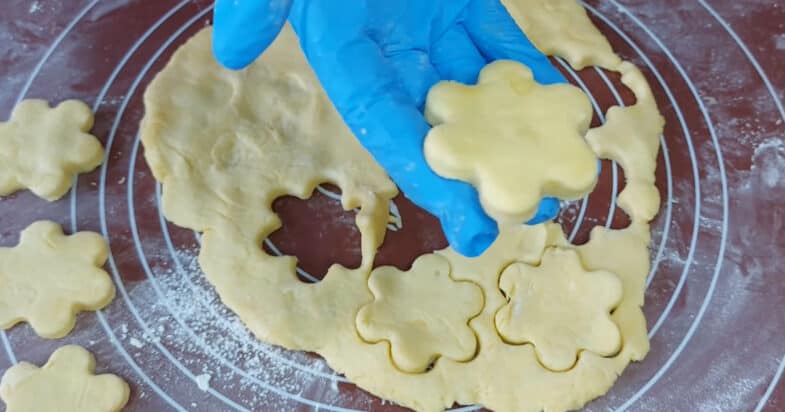 Розкачую частини тіста на пласти товщиною пів сантиметра, вирізаю формочками печиво.