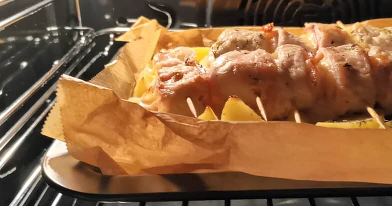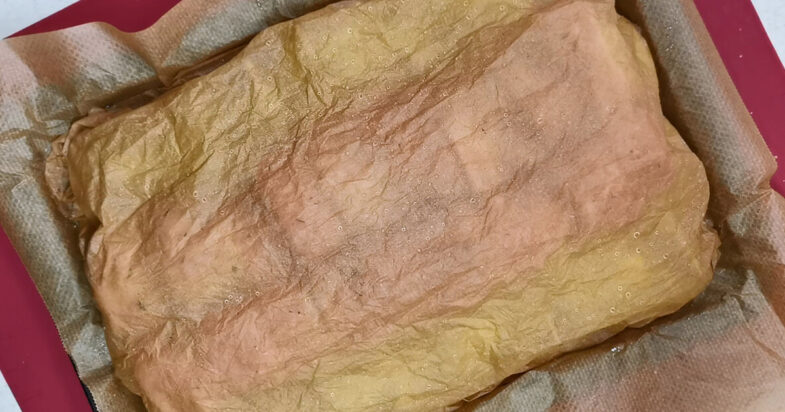 Ставлю в заздалегідь розігріту духовку і запікаю спочатку 30-35 хвилин за температури 230 градусів.  Після цього папір знімаю і запікаю у відкритому вигляді близько 7-8 хвилин за тієї самої температури до підрум’янення.