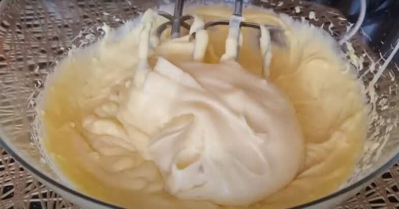 Збиваю м’яке вершкове масло міксером до пишності, додаю охолоджену заварну масу і збиваю міксером до однорідності.