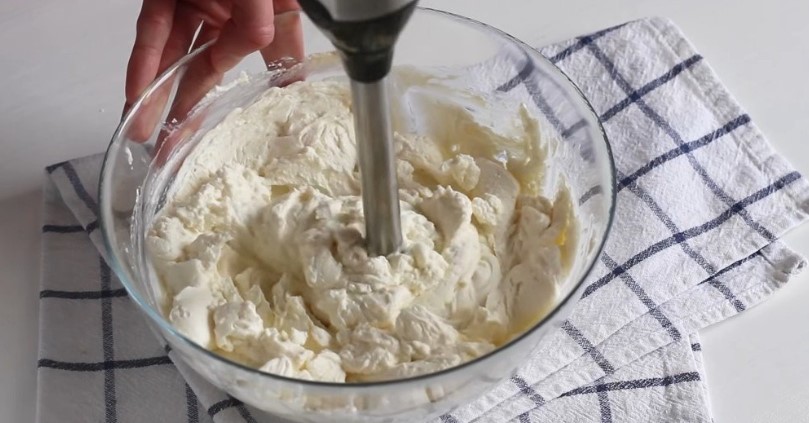 У глибокій ємності змішуємо сир, розтоплене вершкове масло та цукрову пудру. Для аромату додаємо екстракт ванілі. За допомогою блендера перебиваємо все до однорідності.