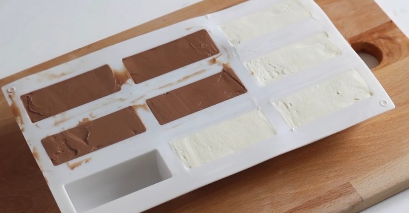 Заповнюємо силіконові форми. Розрівнюємо викладену суміш лопаткою. Відправляємо заповнені форми в морозилку до повного застигання на 2-3 години.