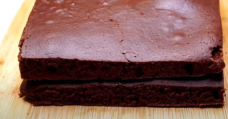 Стандартну форму для випікання застеляю пергаментом і виливаю половину тіста. Відправляю у духовку при температурі 180 градусів на 15-20 хвилин. Випікаю 2 однакових бісквіта. Бісквіти охолоджую, зрізаю краї, які перетворю на крихту для прикрашання.
