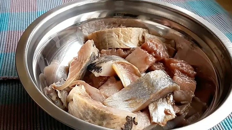 Оселедець необхідно очистити від кісточок та шкірки. Відрізати голову та хвіст, нарізати на шматочки.
