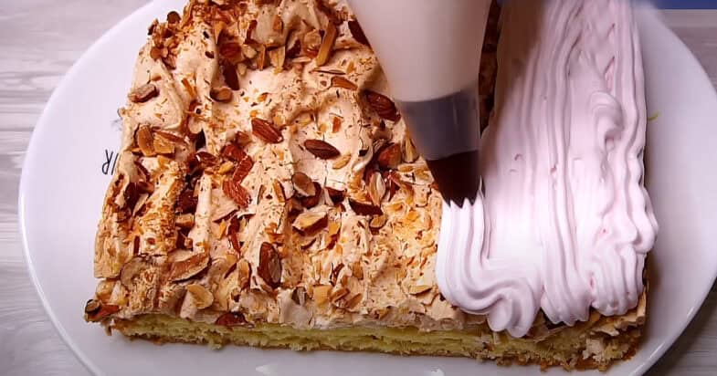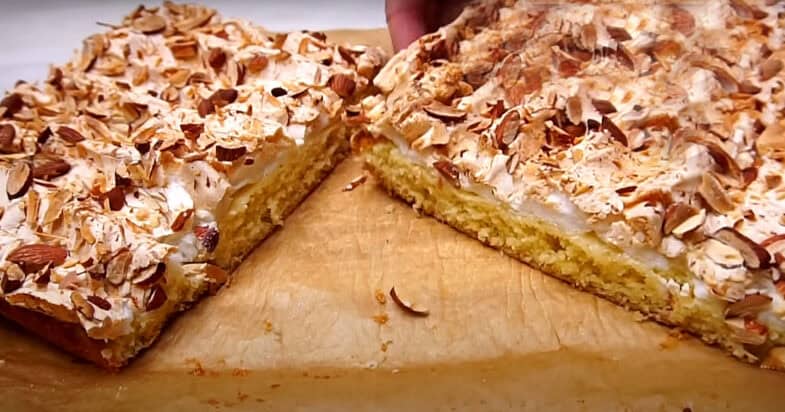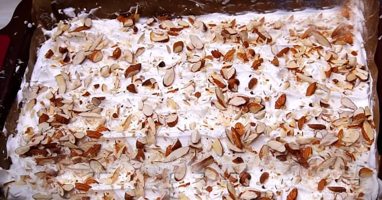 Нарізаю мигдаль і посипаю на білки. Ставлю в розігріту духовку і випікаю при 170 градусах 35-40 хвилин. Все залежить від вашої духовки, потрібно, щоб низ добре пропікся, а верх трохи підрум’янився.