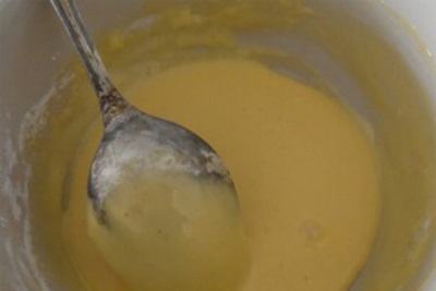 Влити третю частину гарячого ванільного молока в крохмально-яєчну суміш, інтенсивно помішуючи віночком. Потім, при безперервному помішуванні, влити молоко, що залишилося, поставити на слабкий вогонь, постійно помішуючи дерев’яною лопаткою або віночком. В процесі нагрівання крем загусне.