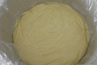 Перекласти крем в миску (щоб швидше остигав). Миску з кремом накрити харчовою плівкою так, щоб плівка лягла прямо на поверхню крему – тоді на поверхні не буде утворюватися плівка.