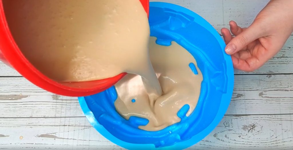 5️⃣ Готуємо форму – силіконову ємність змащуємо олією, виливаємо туди суфле. Відправляємо в холодильник на 1 годину.