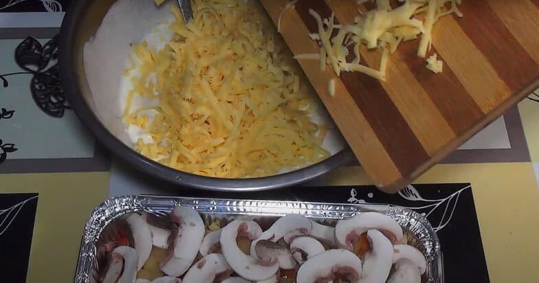 В окремій мисці змішую сметану, яйця, сіль, перець та тертий на терці твердий сир.