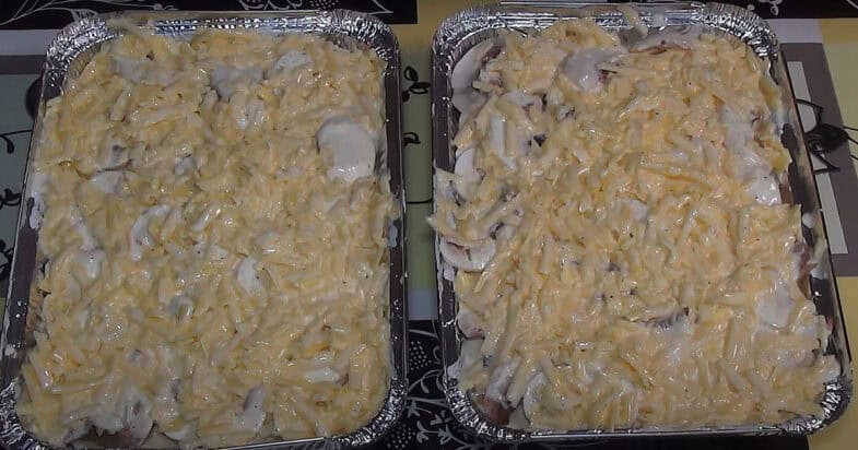 Викладаю зверху заливку. Відправляю у духовку при температурі 180 градусів на 45-50 хвилин.