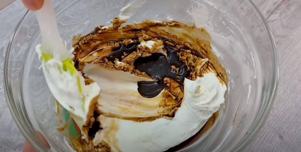 М’який сир змішуємо з цукровою пудрою, вливаємо холодну каву і за бажанням, додаємо ванілін.