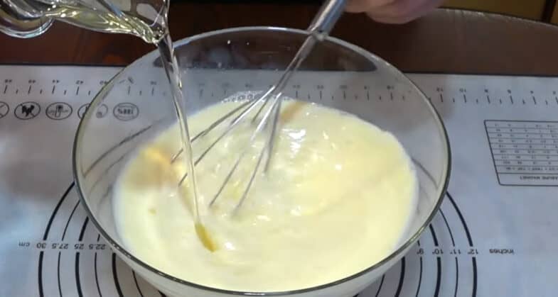В іншу миску виливаю яйце, тепле молоко, рослинну олію та перемішую.