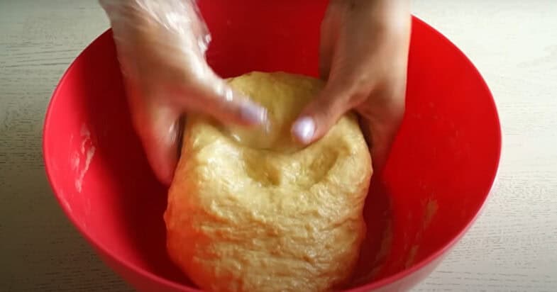 До теплого молока додаю цукор, дріжджі і перемішую. Додаю яйця і сіль, перемішую. Всипаю борошно і ванілін та замішую руками тісто і додаю олію, ще трохи вирішую. Далі під харчовою плівкою залишаю на 1 годину.