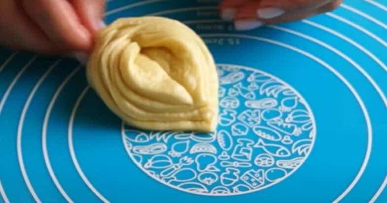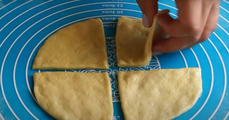 Розкачую руками в коржики, тепер розрізаю на 4 трикутники.