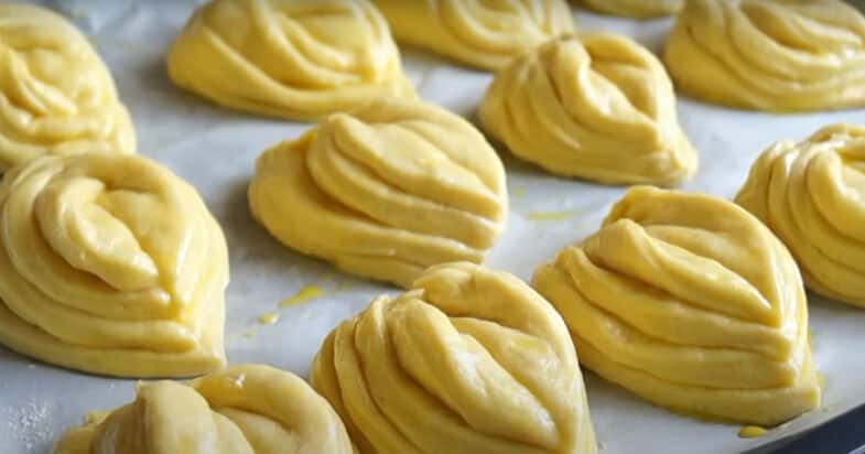 Викладаю на форму застелену пергаментом. Змащую сумішшю жовтка і молока. Випікаю при 180 градусів близько 20 хвилин