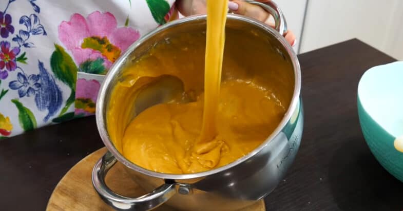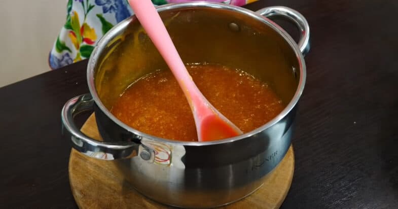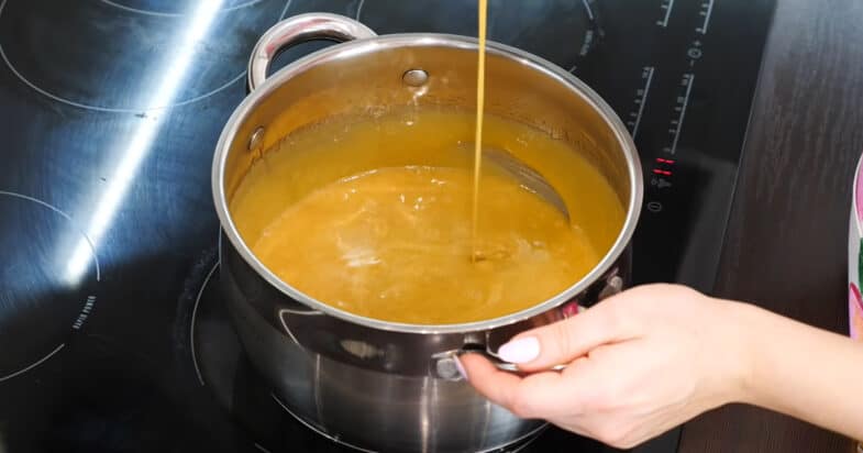 В каструлю відправляємо вершкове масло, цукор та мед. Ставлю на вогонь та помішуючи, чекаю поки все розтопиться. Тоді додаю соду та перемішую, поки все запіниться.