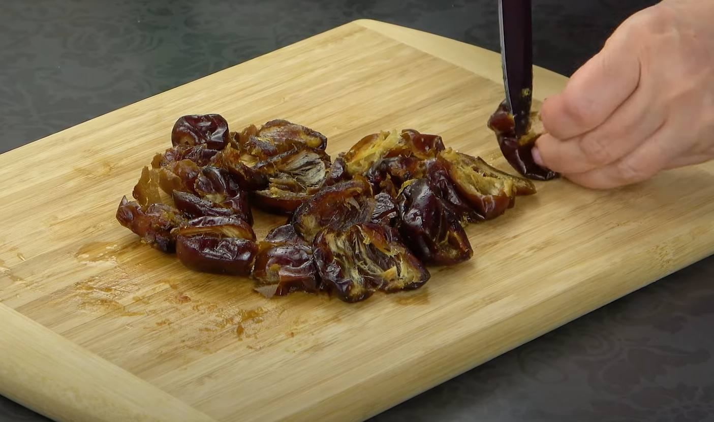 Замочіть фініки у воді на 15 хвилин, потім злийте воду і вийміть кісточки.