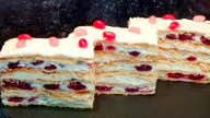 Цей «Наполеон» — справжня знахідка для поціновувачів витонченого смаку. Повітряні коржі, заварний крем, легке білкове суфле та яскрава кислинка вишні створюють ідеальну гармонію. Простий у приготуванні, але з ефектом «вау» на святковому столі!
