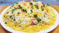 Перший та другий корж: тісто → мак → білкова маса → горіхи → терте тісто