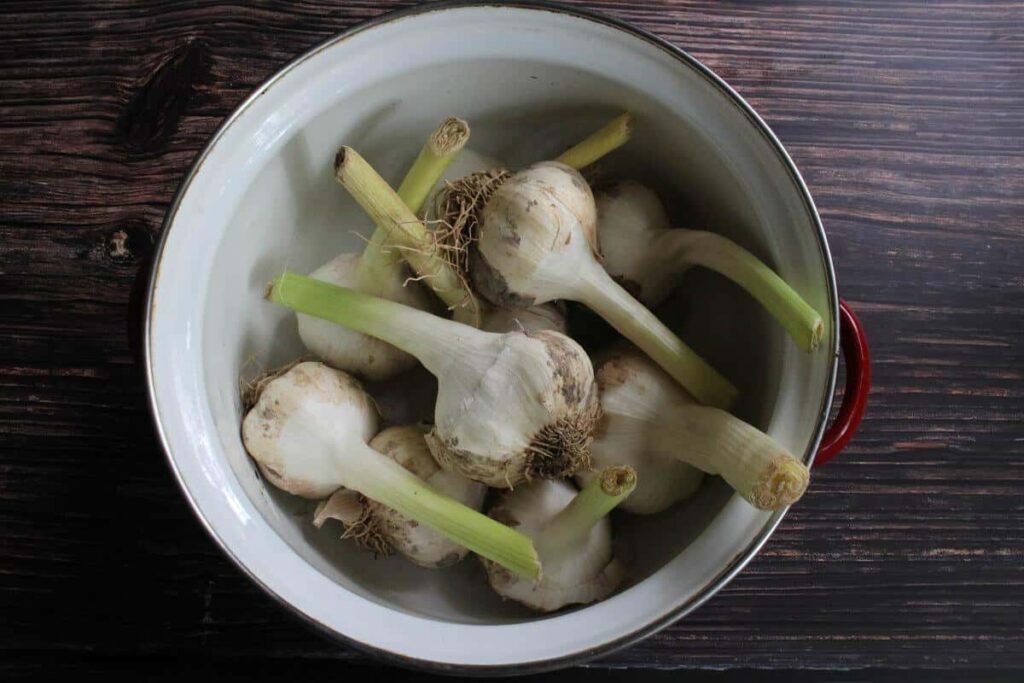 Обережно очищаю: корінці обрізаю, але залишаю головки цілими. Можна залишити одну білу шкірочку або почистити до зубців — кому як до смаку.