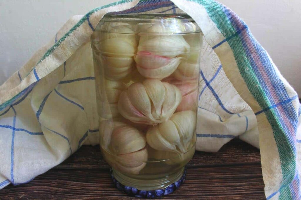 Заливаю банки з часником окропом і даю охолонути повністю.