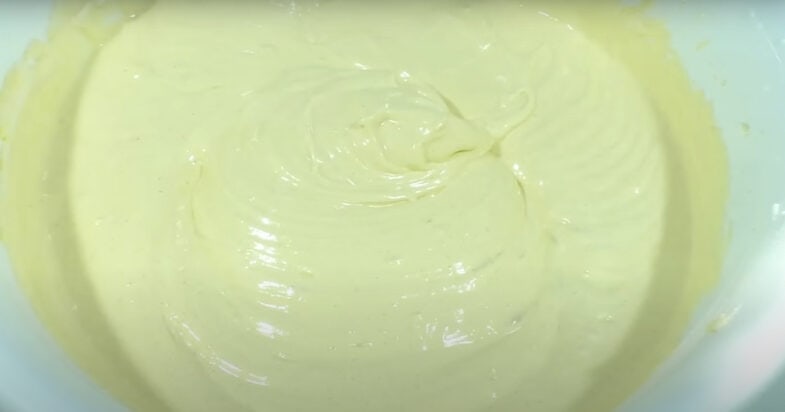 Збиваю яєчні білки міксером в піну. Додаю цукор та ванільний цукор і збиваю до пишної та світлої маси. Додаю жовтки та збиваю до однорідності. Просіюю борошно, розпушувач та куркуму, замішую міксером до однорідності.