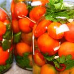 Замочую кришки у гарячій воді та щільно закриваю банки. Ставлю у каструлю, вливаю на половину каструлі води та варю до кипіння і потім ще 15 хвилин.