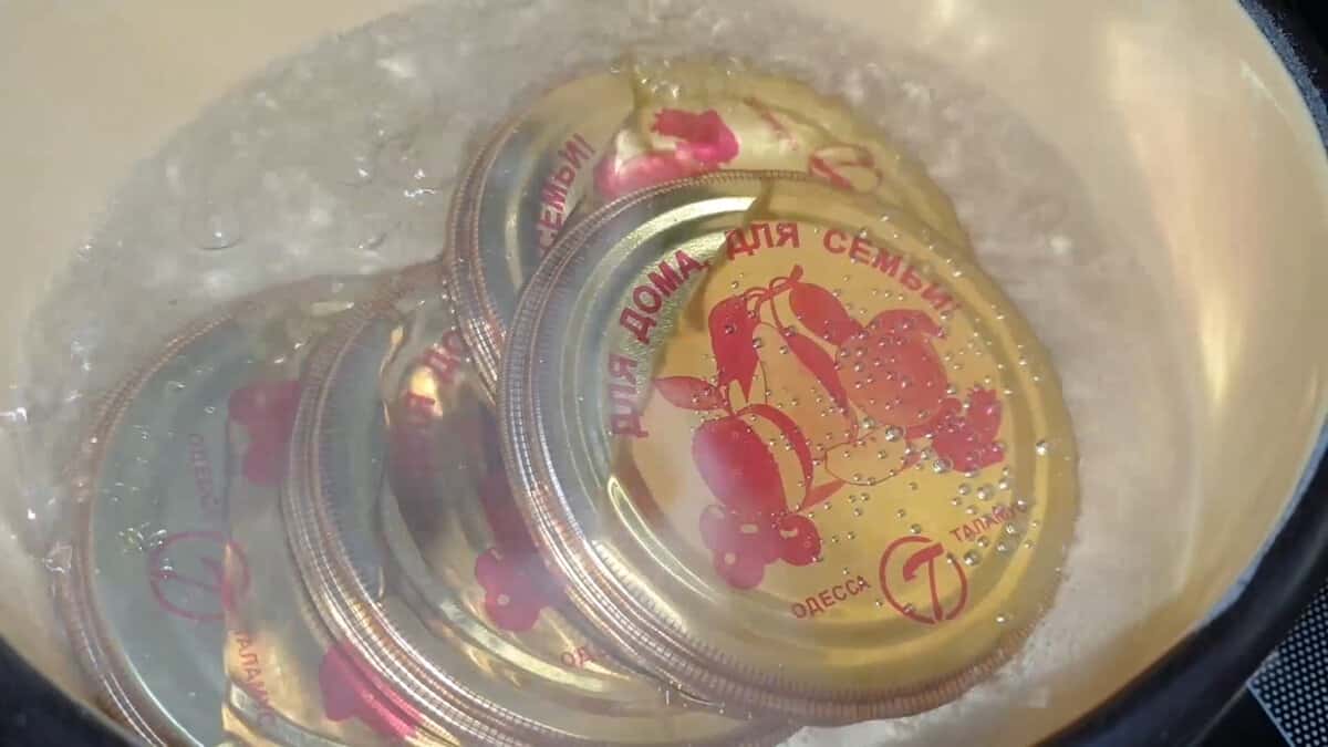 5. Стерилізую лише кришки. У каструлі доводжу воду до кипіння.
