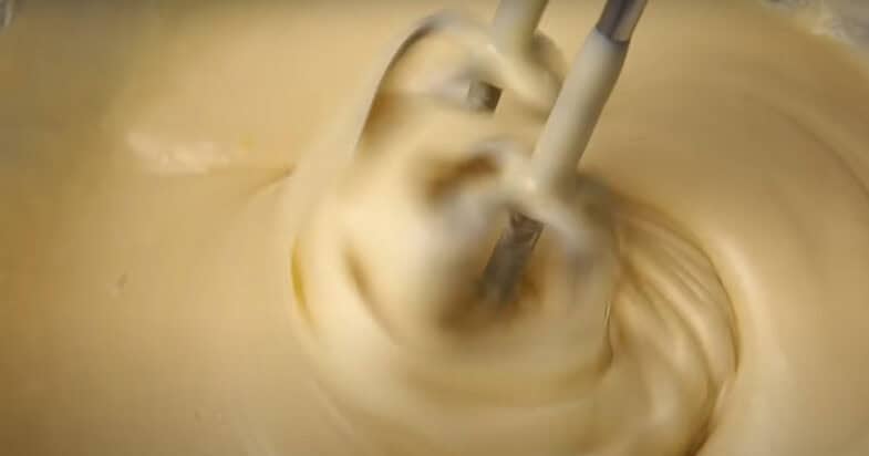 Збиваю яйця міксером з сіллю, ванільним цукром та цукром до пишної та світлої маси. Вливаю молоко, олію, перемішую. Просіюю борошно і розпушувач, замішую міксером до однорідності.