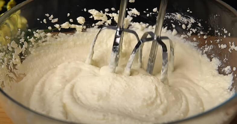 Збиваю міксером до однорідної маси сир, цукор, ванільний цукор та яйце.