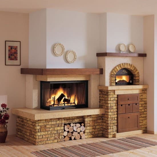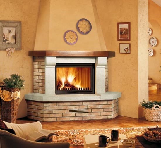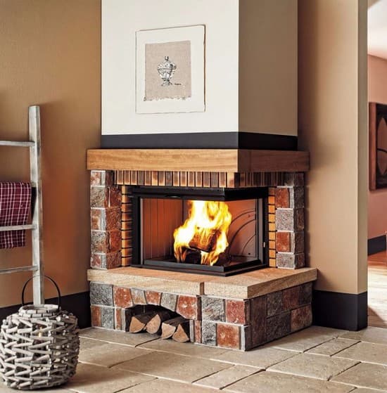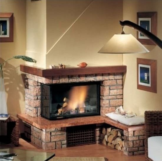 Цегляний кутовий камін на дровах для приватного будинку: 50 стильних рішень для тепла та затишку