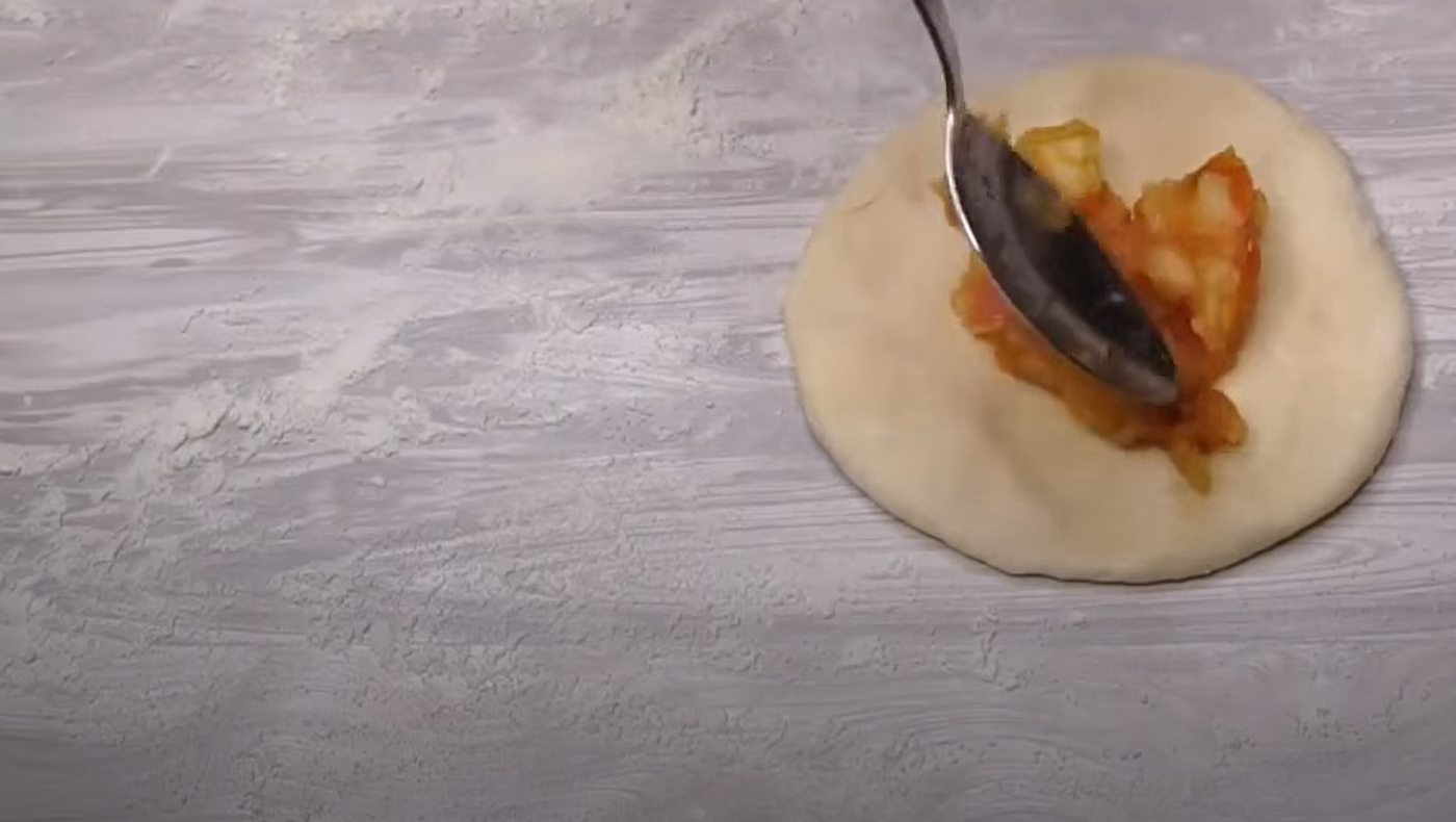 Для пиріжків: розплющуємо кульку, додаємо яблука, защіпуємо краї