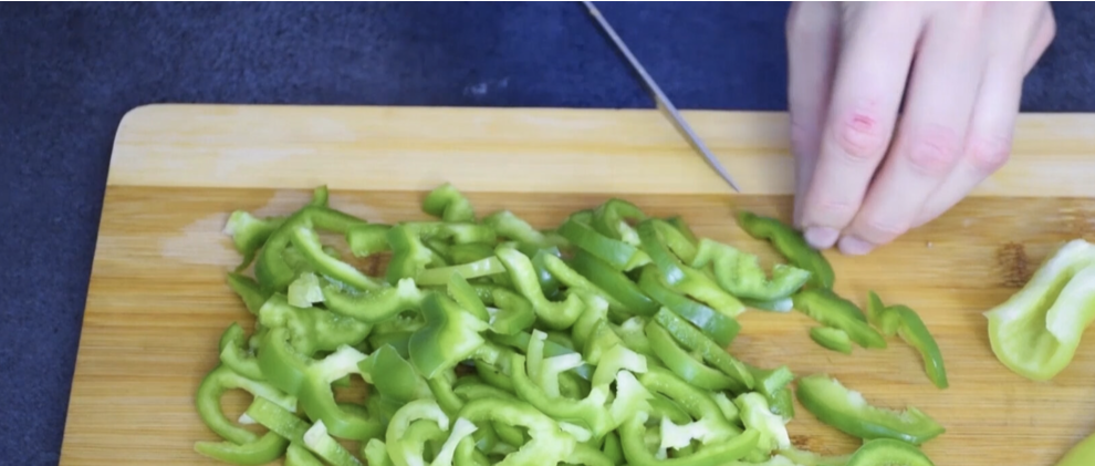 🔹 Перець. Підготуйте болгарський перець будь-якого кольору — очистіть від насіння та наріжте смужками або кубиками. Додаємо його до овочевої суміші і тушкуємо ще 10 хвилин.