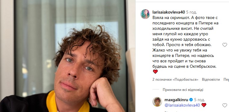Особливу увагу привернув діалог з однією з прихильниць, яка висловила жаль, що не зможе відвідати концерт Галкіна у Санкт-Петербурзі, але сподівається на його повернення на сцену «Жовтневого». У відповідь Максим лаконічно відправив смайлик-серце, що ще більше зацікавило фанатів.