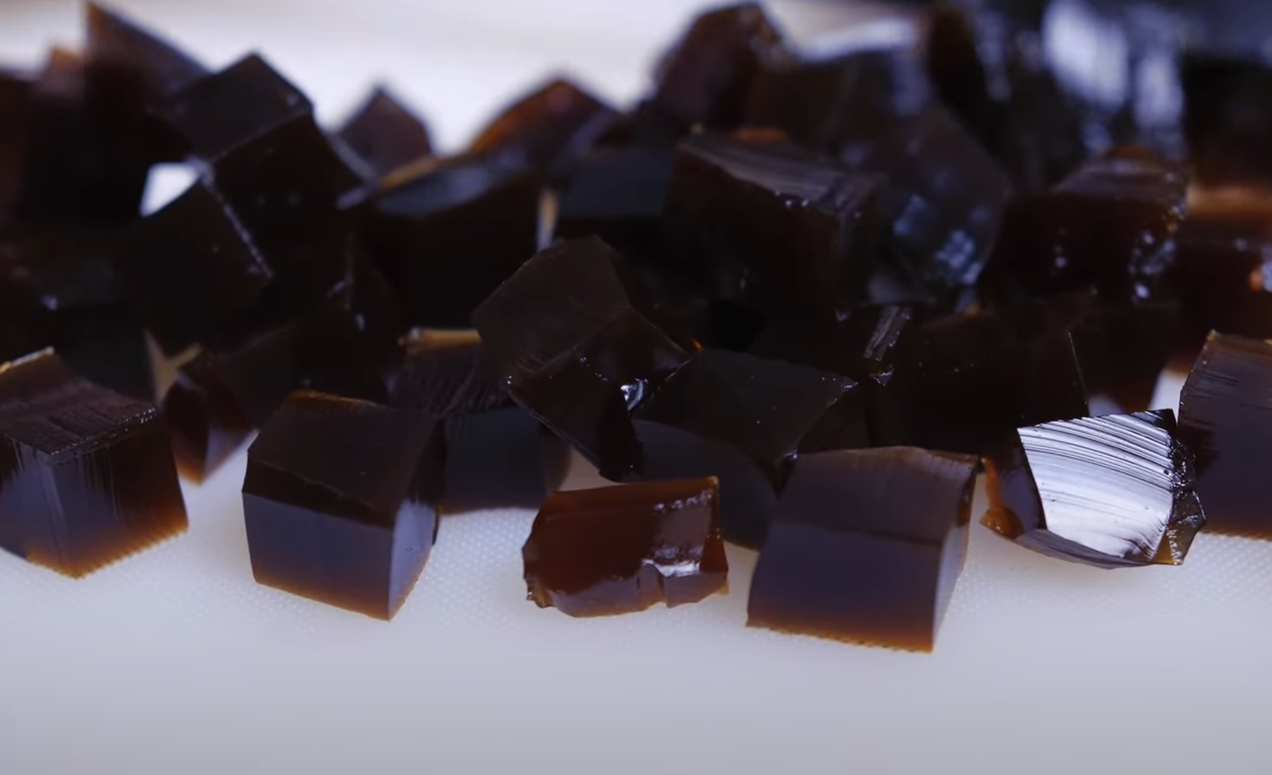 Застигле желе наріжте кубиками приблизно по 1 см.