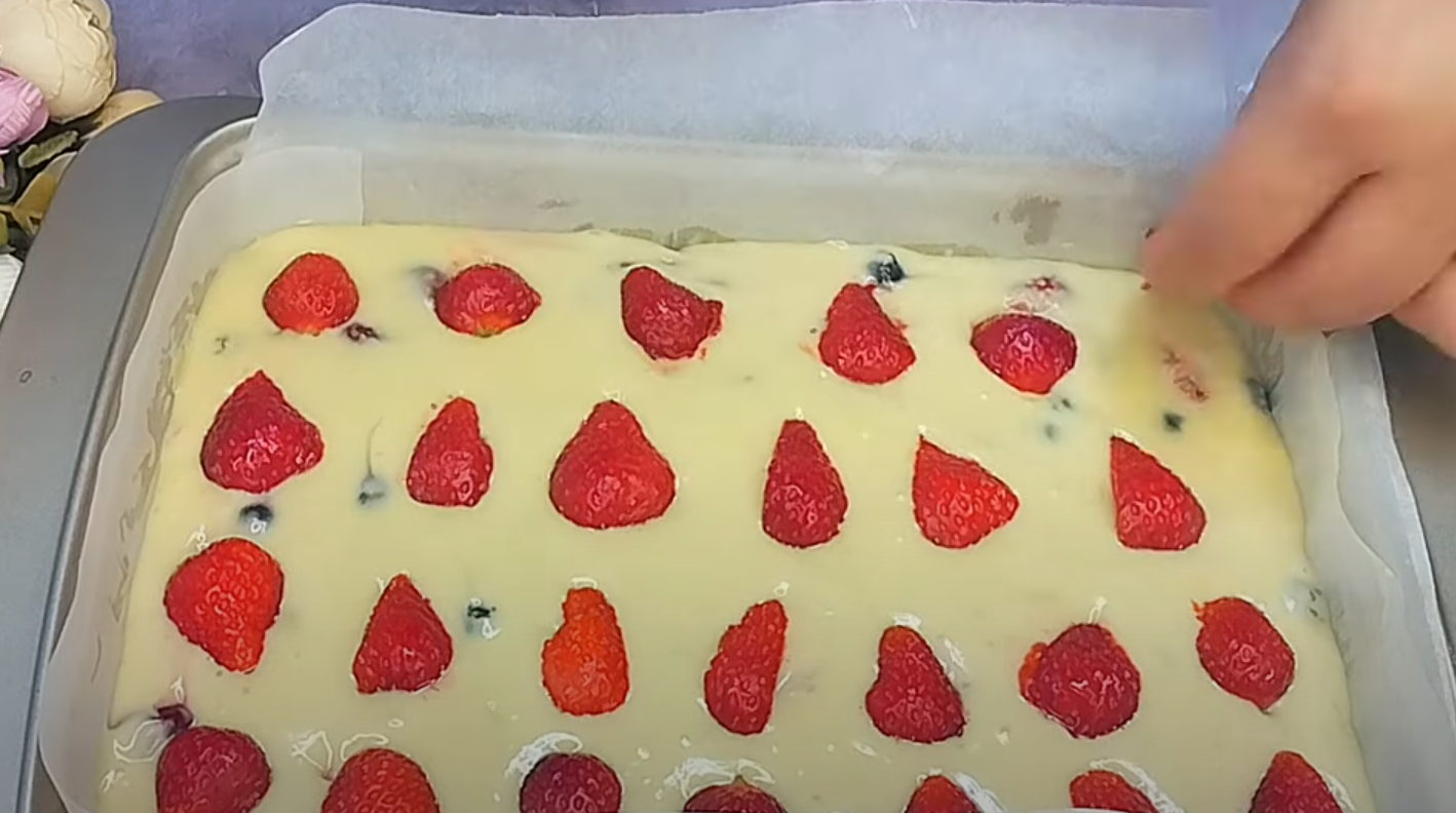 6. Зверху викладіть кілька шматочків полуниці та лохини для краси