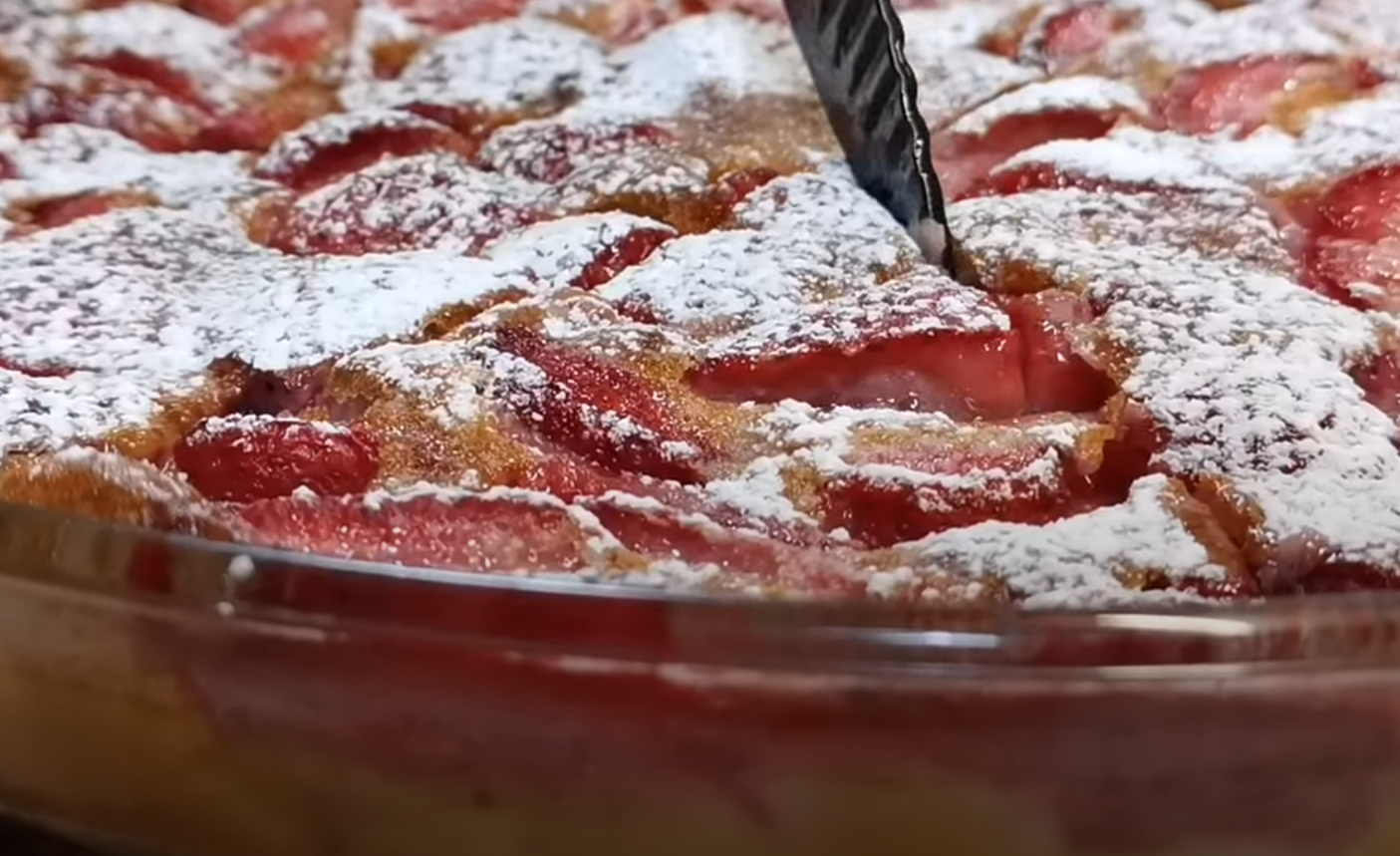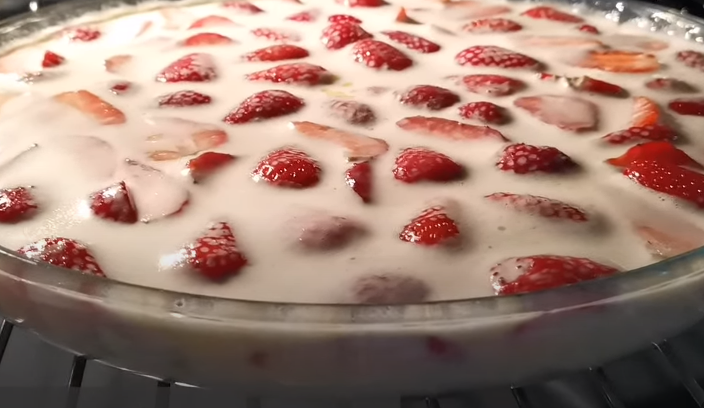 5. Залийте полуницю тістом і випікайте при температурі 180–190°C приблизно 30–35 хвилин.