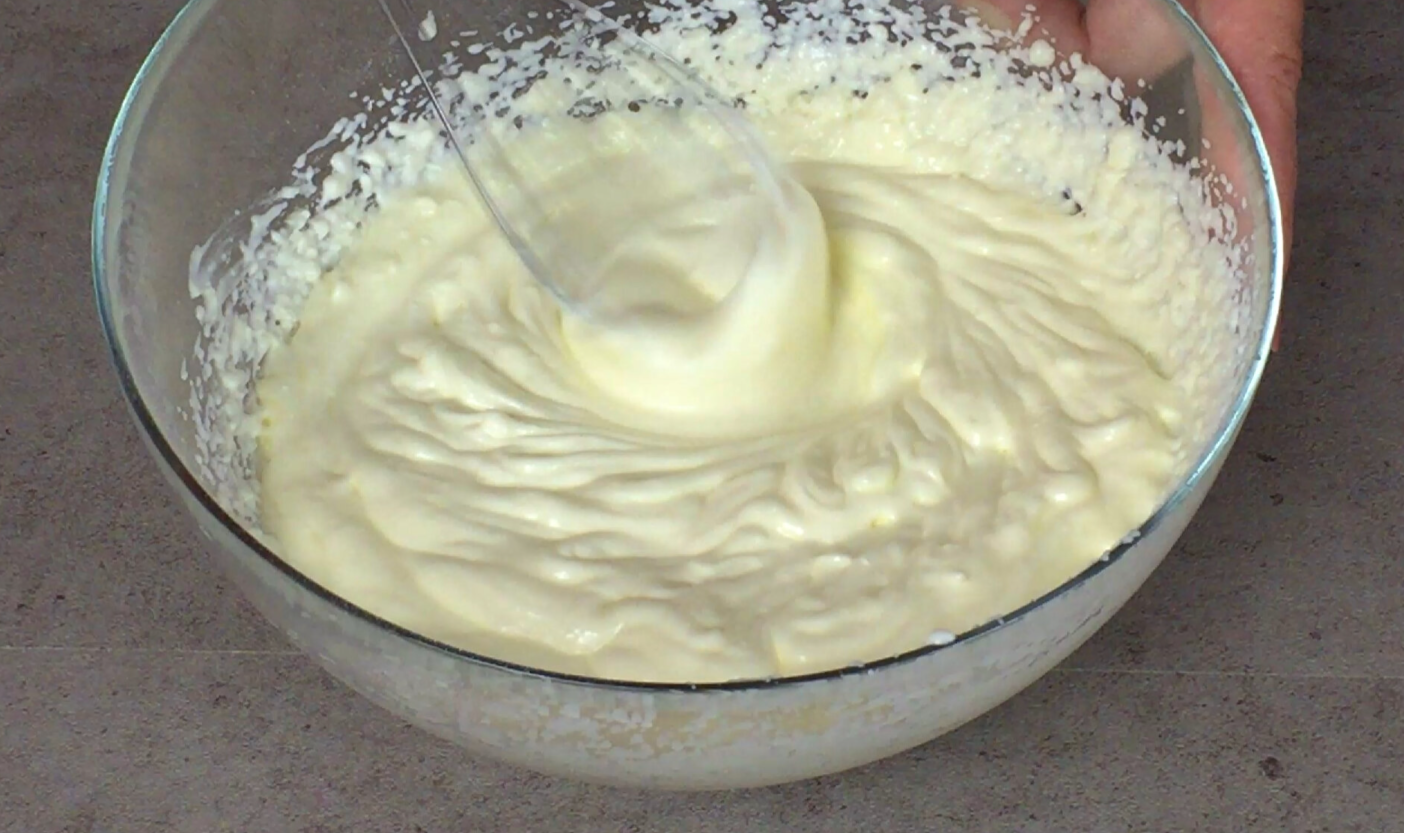 Беру сметану 20% жирності, додаю цукрову пудру та загущувач. Якщо його під рукою немає — використовую трохи кукурудзяного крохмалю.