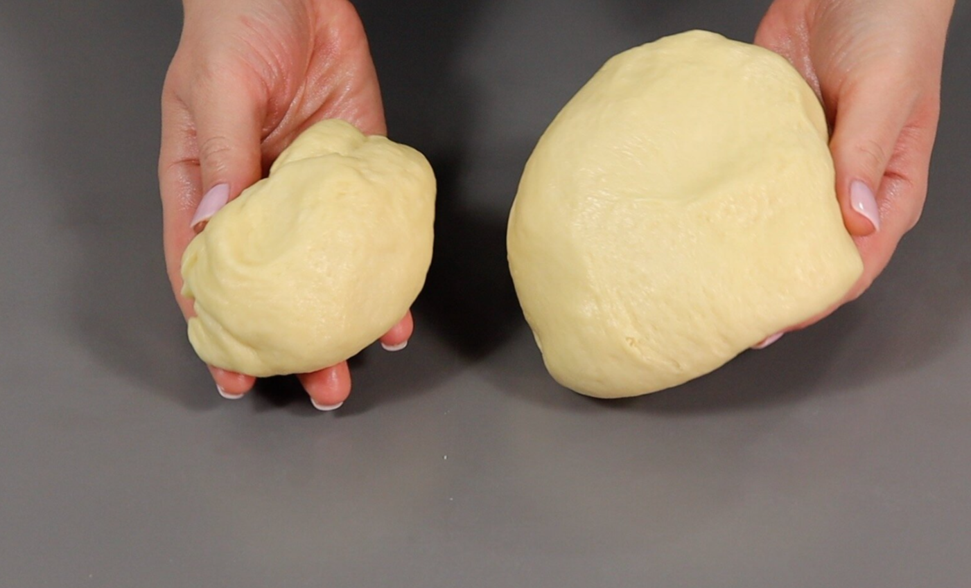 3️⃣ В опару додаємо яйце, сіль, залишок цукру, масло, поступово вводимо борошно. Вимішуємо тісто 5-7 хвилин, даємо підійти 1 годину.