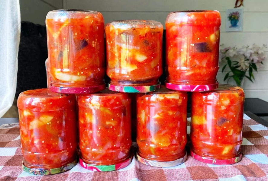 Цей салат — справжній скарб серед зимових заготовок. Баклажани в дуеті з кабачками створюють неперевершений смак, а томатний соус додає яскравих ноток. Готую щороку — баночки зникають першими!
