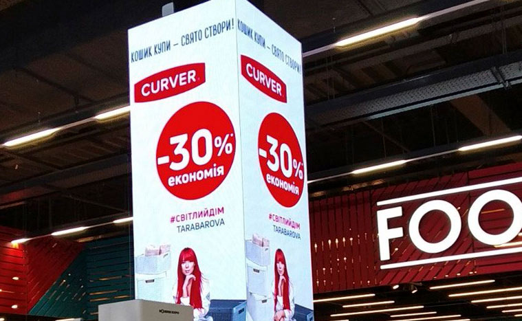 • Торговые центры и магазины — для рекламы, витрин и интерактивных зон;